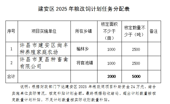 按照前期申报,2025年,粮改饲项目补助对象是许昌市建安区绚丰种养殖家庭农场、许昌市夏昌种畜禽有限公司。