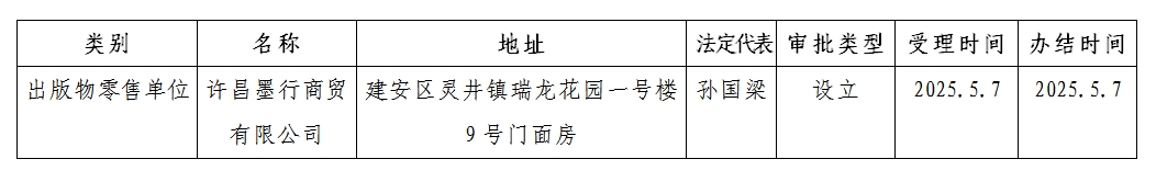 建安区新闻出版局2025年第二季度出版物零售单位审批项目