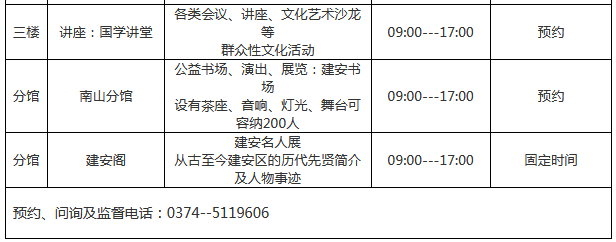 建安区人民文化馆 免费开放及馆内常设服务公示表