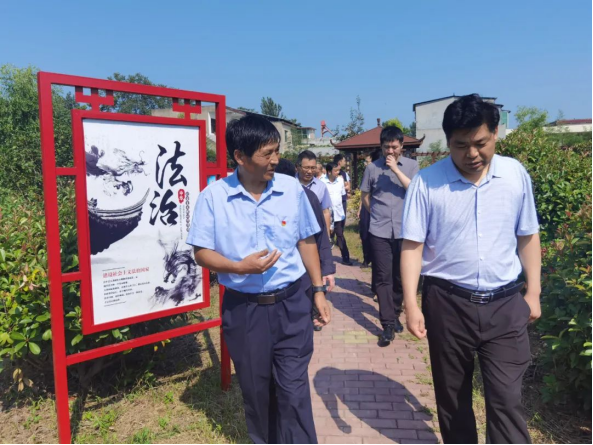 活动第一站,首先参观了陈曹乡尚庄村法治文化阵地,尚庄村党支部书记尚红叶和村(居)法律顾问郑智勇详细介绍了该村法治建设工作开展情况。通过实地参观、现场交流等方式,详细了解尚庄村在法治建设工作中的具体做法和取得成效,并对尚庄村法治游园广场、法治文化长廊建设和顾问律师参与村务管理等方面产生了浓厚兴趣,双方进行了热烈交流。