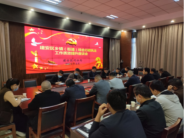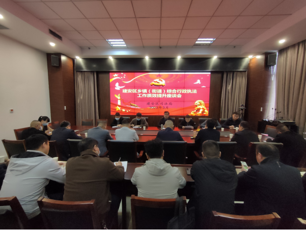 为深入贯彻落实省、市关于乡镇(街道)综合行政执法相关文件精神,切实提升建安区乡镇(街道)综合行政执法工作质效,3月29日建安区召开提升乡镇(街道)综合行政执法座谈会。会议由司法局牵头组织,区城管局、文广旅局、自然资源规划分局、生态环境分局、财政局、水利局等赋权单位分管领导及16个乡镇(街道)综合行政执法大队长参加会议。