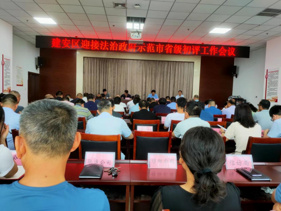 为认真做好中央依法治国办和省法治政府建设领导小组办公室对我市全国法治政府建设示范市创建工作实地核验、第三方满意度调查等相关初审工作。根据上级工作安排,建安区于8月25日上午召开迎接法治政府示范市省级初评工作会议,会议由区司法局党组书记赵鹏祥主持,区政法委副书记黄照宇、区司法局局长孙龙、区司法局党组成员、副局长宋晓涛、各区直和驻区单位、各乡镇分管法治副职参加会议。