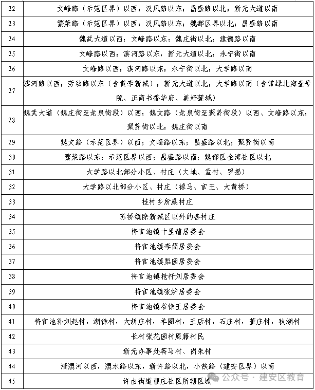 以下片区仅包括属建安区管辖且在小学片区划分中已列举名称的小区及村庄。