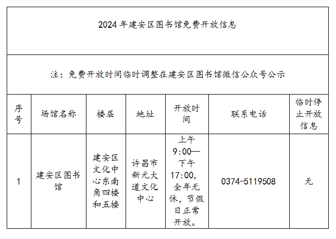 2024年建安区图书馆免费开放信息