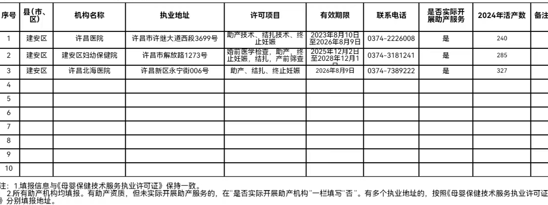建安区助产机构名单公示