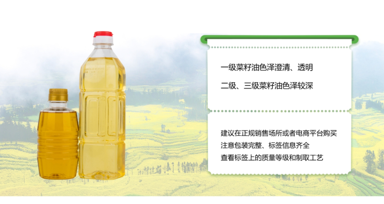 “开门七件事,柴米油盐酱醋茶”。食用油是人们日常生活的必需品,其中菜籽油食用量大、风味浓郁、脂肪酸组成较为均衡,深受广大消费者喜爱。为帮助消费者科学认知菜籽油,特做如下消费提示。