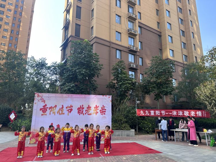 为与居民欢度传统节日——九九重阳节,继续传承中华民族尊老敬老的优良传统,营造和谐友善的社区氛围,10月23日上午9点半,许由街道翡翠社区联合新蓝天幼儿园、区政法委、区法院、区检察院、区统计局开展了“九九重阳节·浓浓敬老情”重阳节活动。