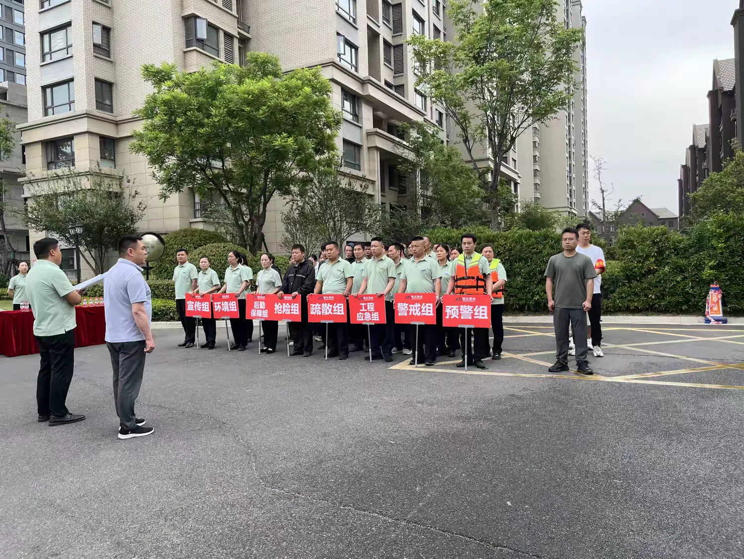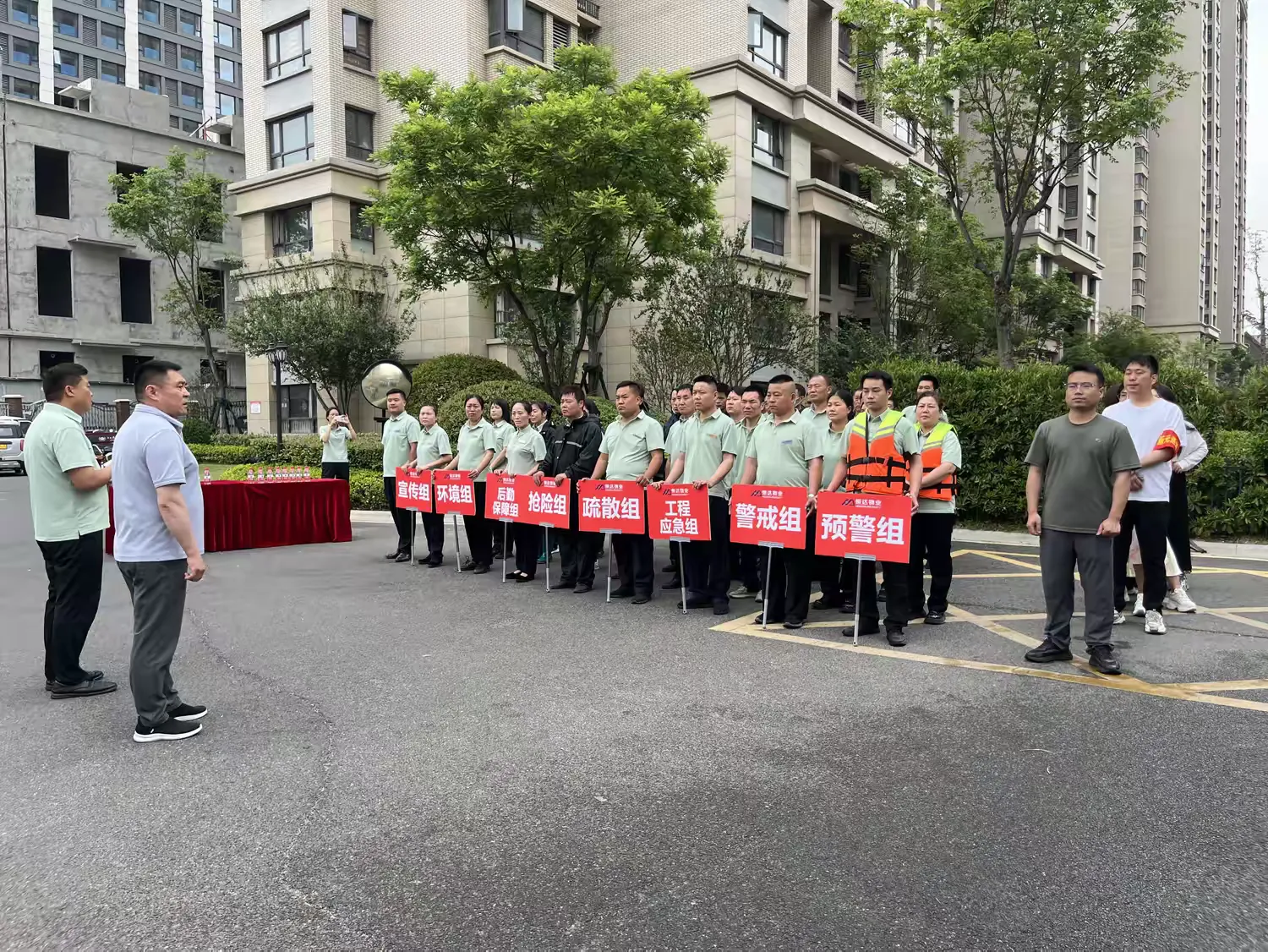 为保障演练活动的顺利开展,在演练开展前将工作人员分工做详细安排,共划分警戒组、预警组、工程应急组、抢险组、疏散组、后勤保障组、环境组、宣传组等6个应急小组,总计50余人。