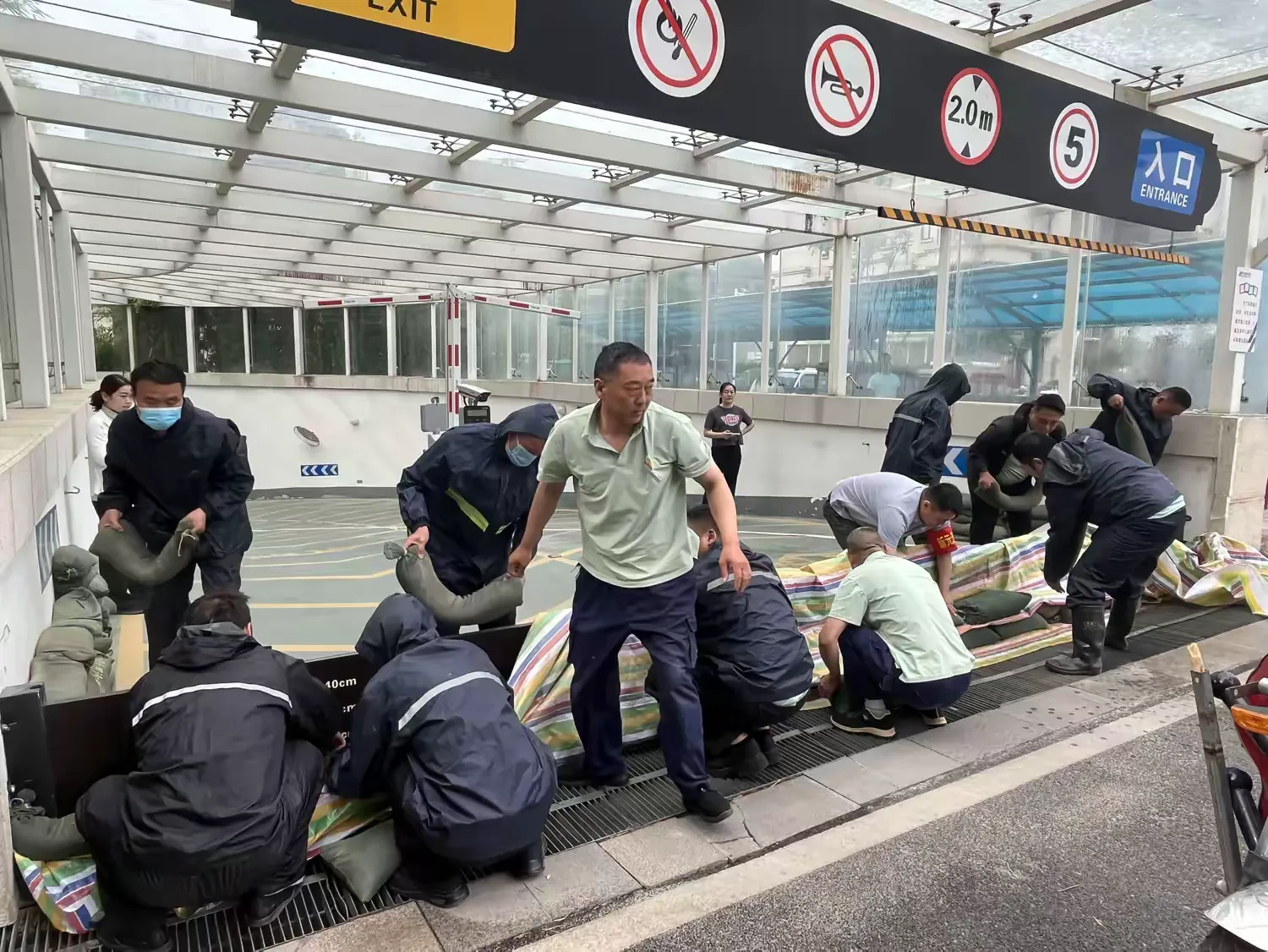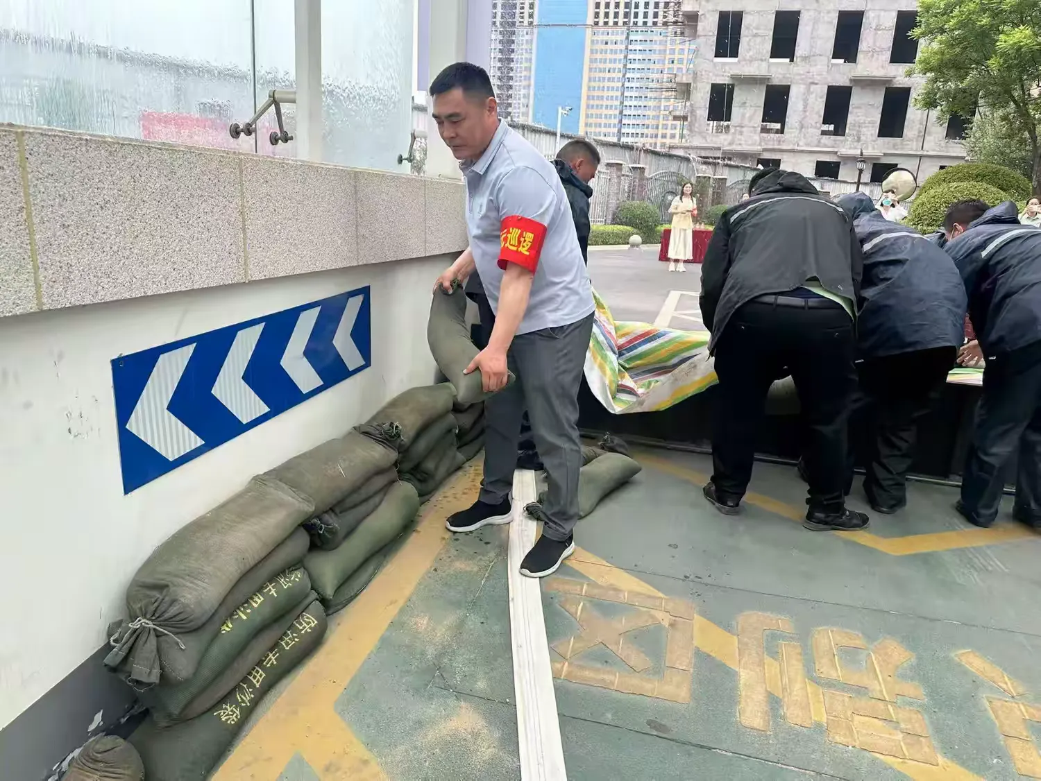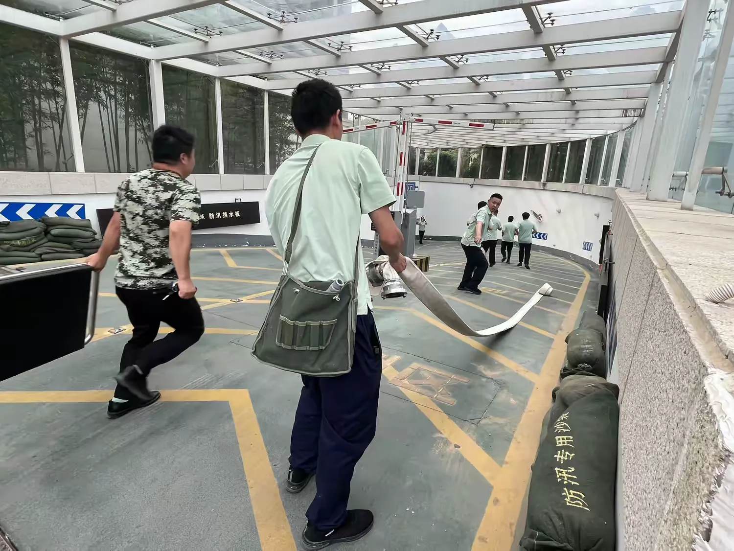 随着防汛应急演练总指挥一声令下,演练正式拉开帷幕。模拟场景中,暴雨持续,低洼地带出现大量积水,形势十分危急。 抢险组迅速携带沙袋赶赴现场,在车库入口处构筑防水墙,防止积水倒灌,并及时调配抽水泵、排水管道等设备,对积水区域进行紧急排水。
