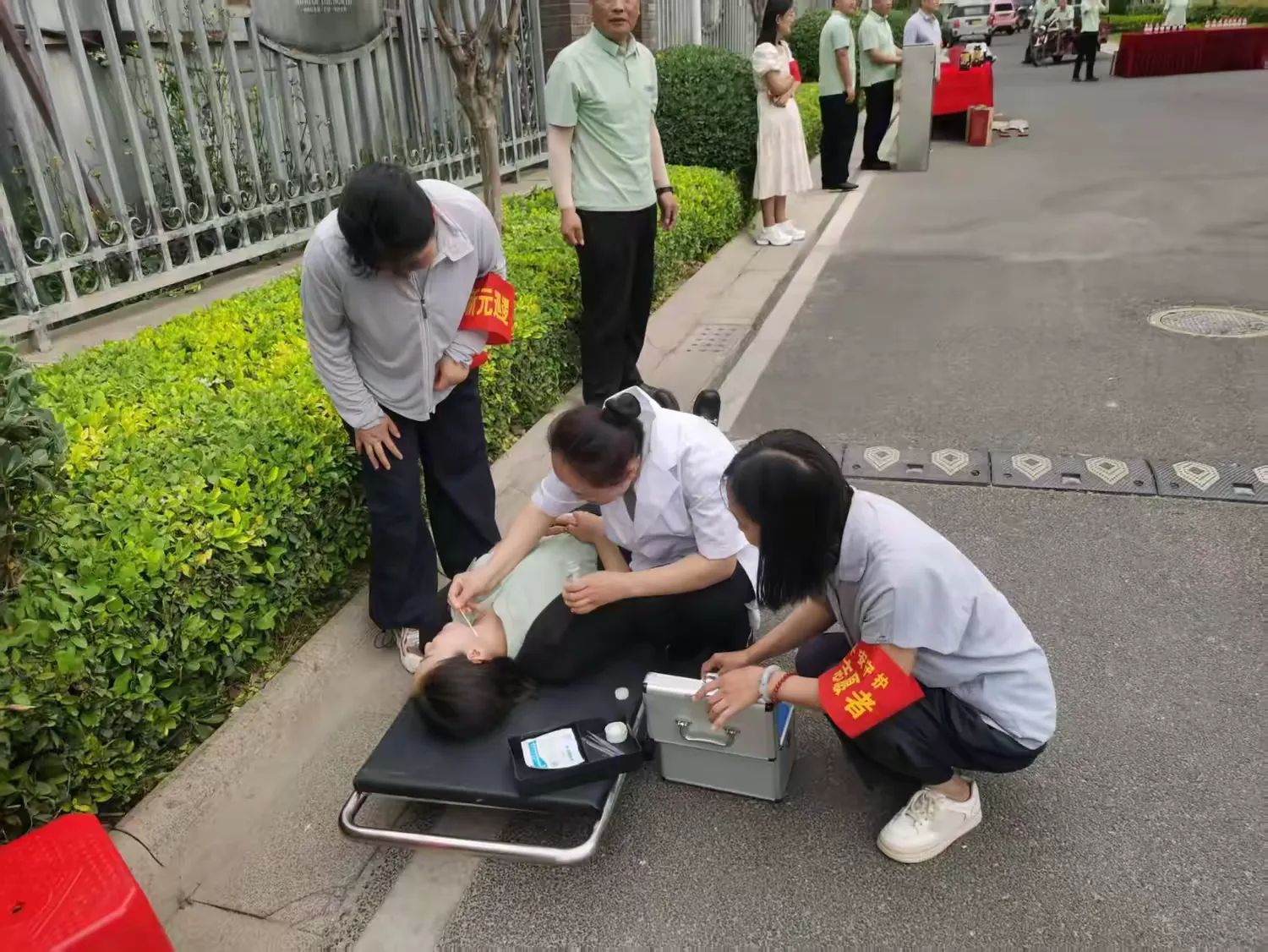 后勤保障组接到险情通知后,携带急救物资迅速抵达现场,将伤员平稳转移至担架,快速通过安全通道运送至临时医疗点。在临时医疗点,他们对伤员进行进一步生命体征监测和救治。
