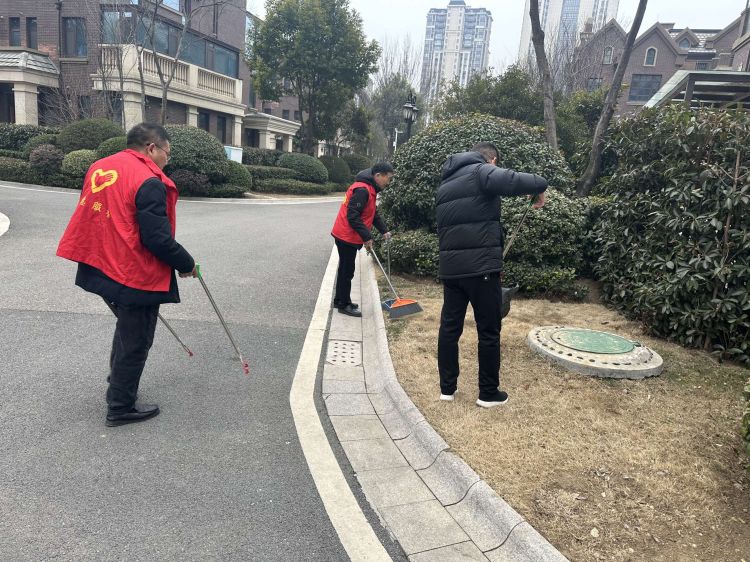 志愿者们手持扫帚、垃圾捏、垃圾斗等工具,或两两一组或三五成群,清扫路面枯枝干叶,清理绿植中的烟头、果皮等杂物,并重点对卫生死角进行了集中清理。