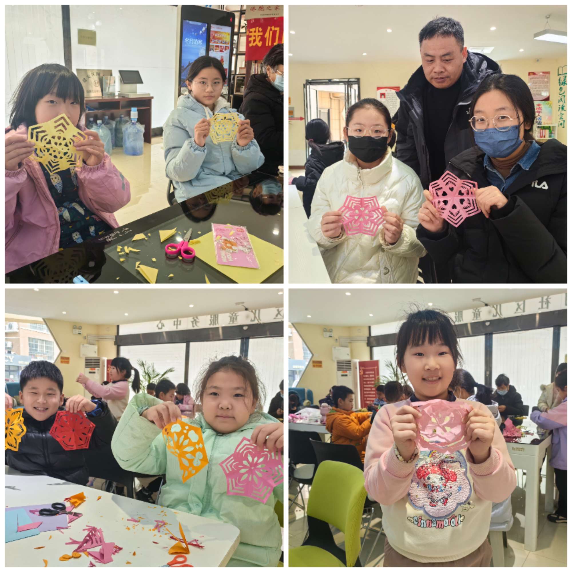 学剪窗花:贴窗花是春节的一大习俗,活动特邀建安区文明实践中心书画类志愿者张洪涛、李军敏老师共同来交小朋友们剪窗花。老师从如何折叠纸张,到怎么下剪,一步一步讲的十分细致,不一会儿,一个个形态各异的窗花在小朋友们的手中诞生,看着自己的劳动成果,脸上洋溢着自豪和喜悦的笑容。通过体验剪纸艺术的乐趣,让孩子们在欢乐的氛围中感受节日的喜庆。