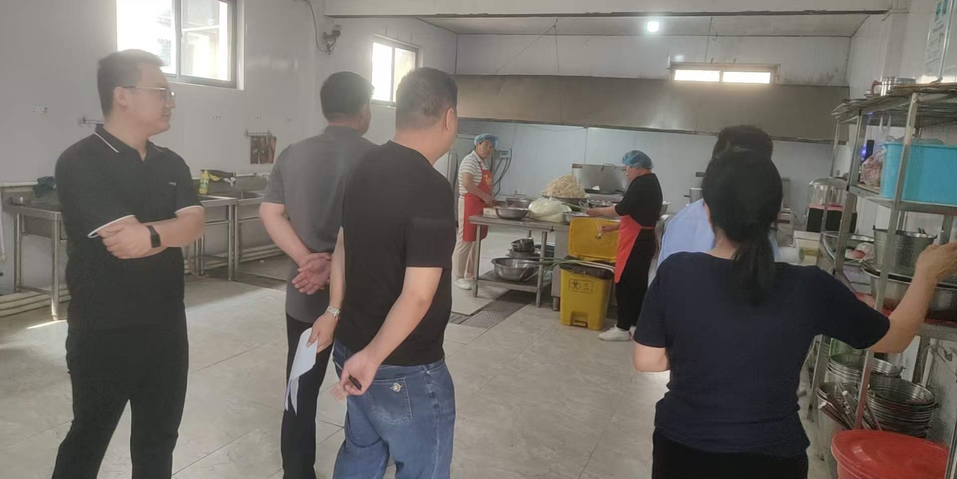 昌盛街道赵主任重点查看了学校餐厅主体资质、原料采购及贮存场地、加工操作流程、餐具清洗及消毒等关键环节。要求学校落实校园安全和食品安全主体责任,守护好孩子们身心健康。