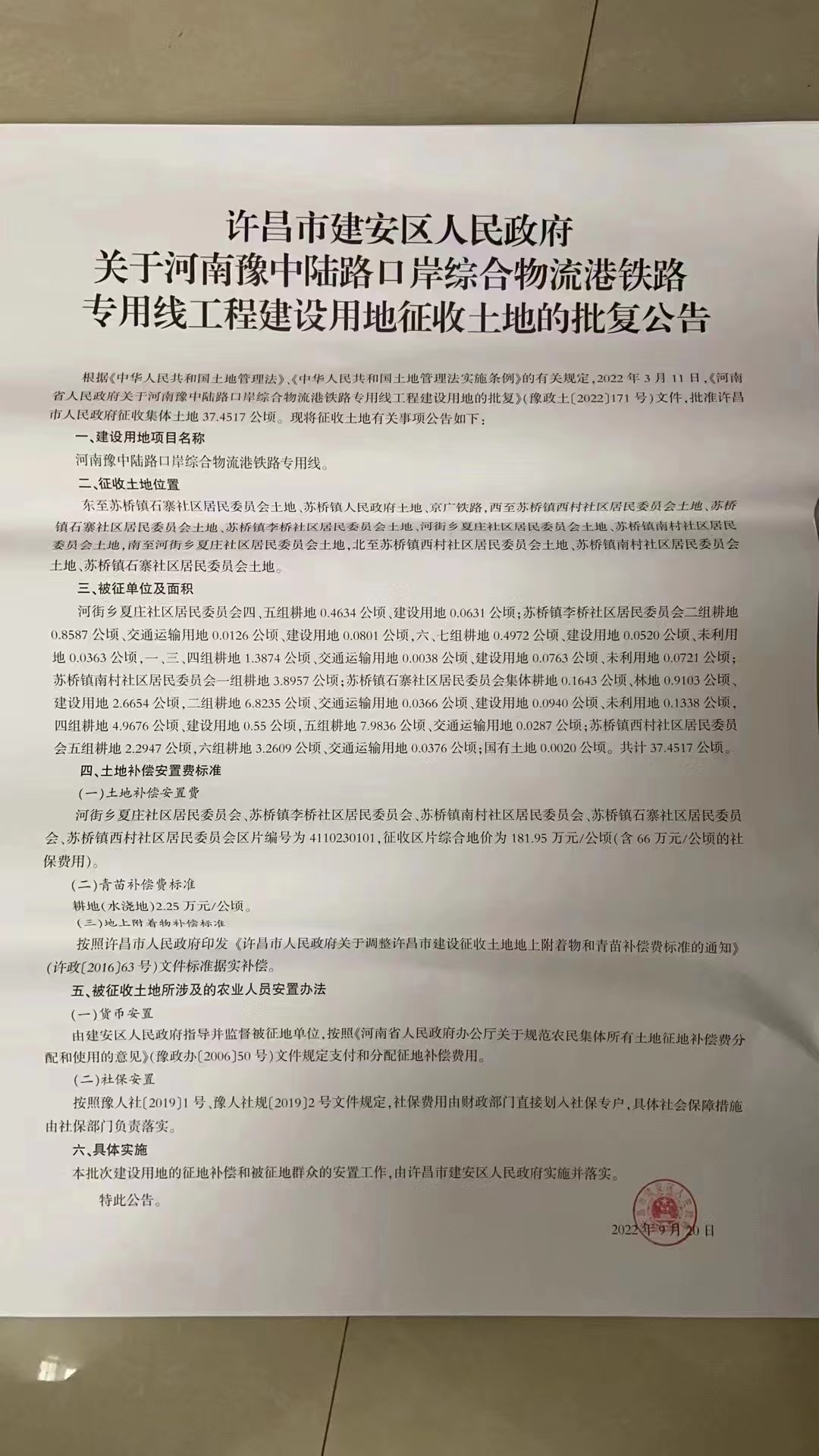 关于建设用地征收土地的批复公告