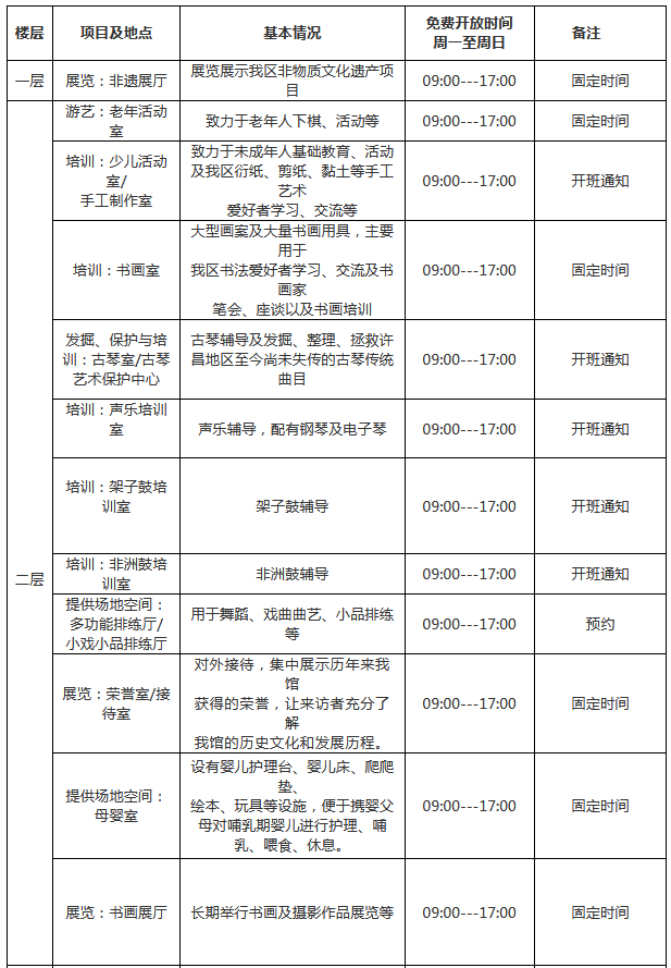 建安区人民文化馆 免费开放及馆内常设服务公示表