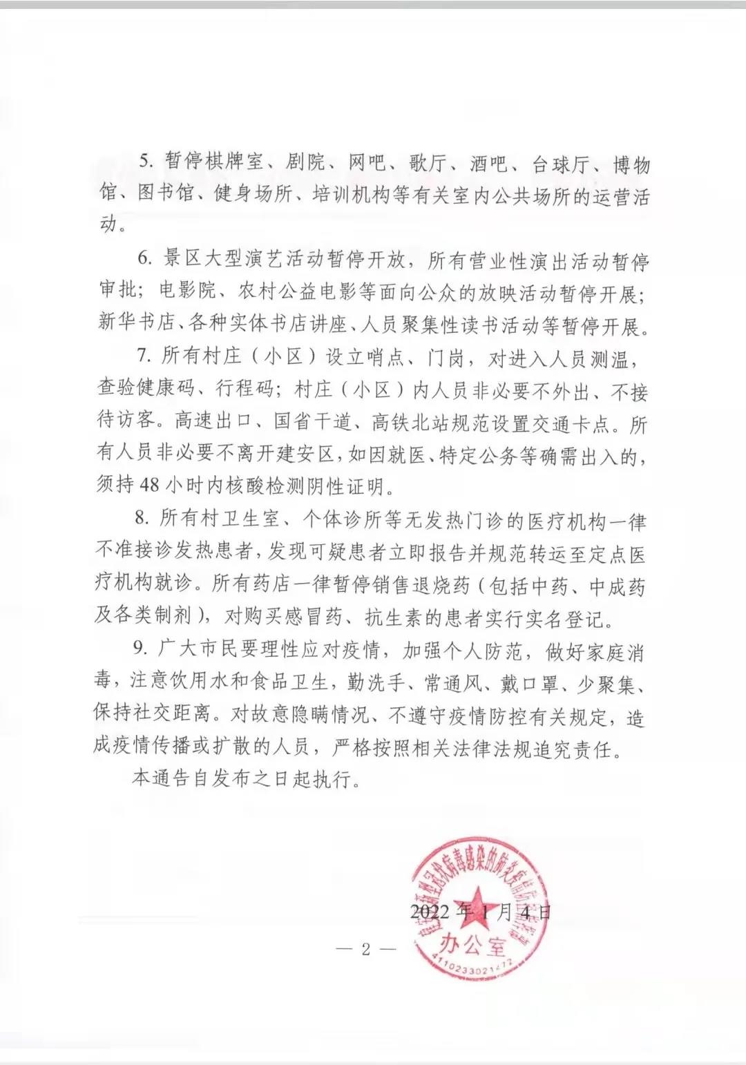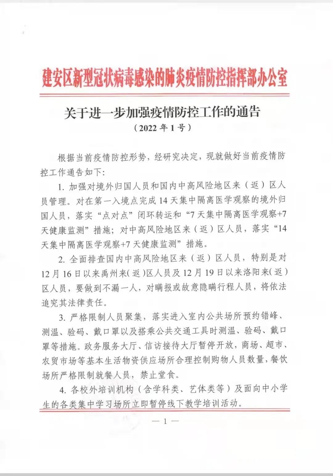 关于进一步加强疫情防控工作的通告(2022年1号)
