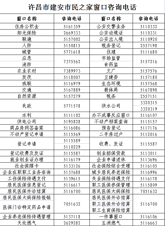 为更好的服务企业和办事群众,建安区行政服务中心推出了电话预约服务,企业和办事群众可以通过线上办理政务服务事项,也可以通过市民之家公布的窗口电话进行预约咨询。
