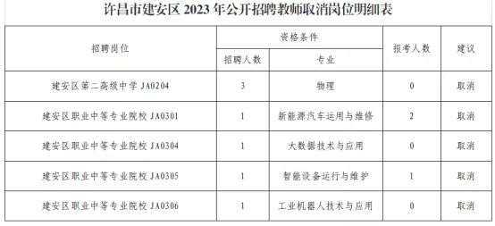 附件:许昌市建安区2023年公开招聘教师取消岗位明细表