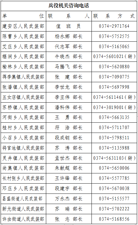 (1)2024年12月31日前,常住户籍在建安区范围内,以及在本辖区内普通高等学校、高中和中等学校就读的年满18周岁男性公民,均应参加初次兵役登记。