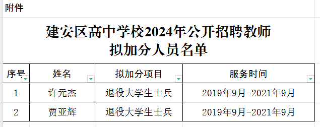 按照《建安区高中学校2024年公开招聘教师公告》规定,对拟享受加分政策的报考人员进行了审核,现将拟加分人员名单公示如下,公示期3天(2024年6月3日——6月5日)。资格审查工作贯穿于公开招聘工作的全过程,在任何环节发现考生不符合加分条件或提供虚假证件、证明,均可取消其加分资格。