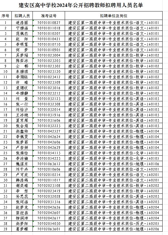 建安区高中学校2024年公开招聘教师拟聘用人员名单公示