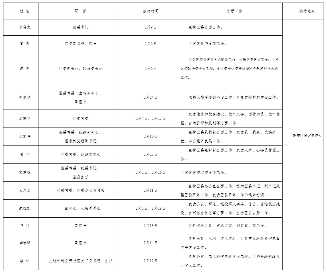 2026年2月份建安区党政领导干部公开接待群众来访日程表